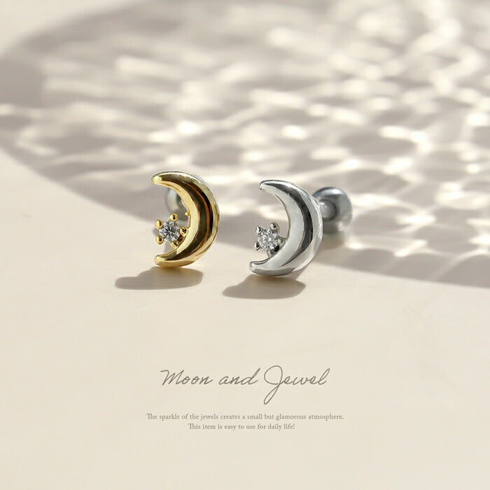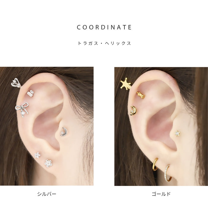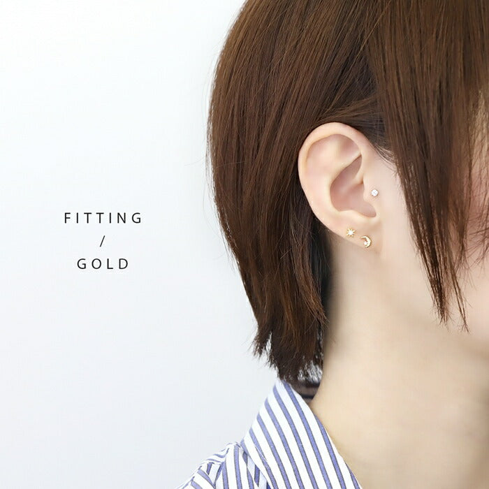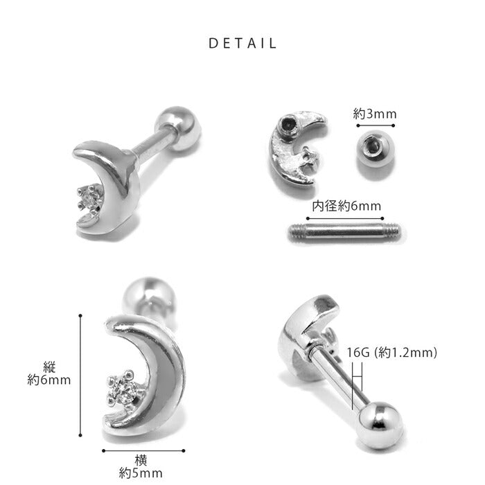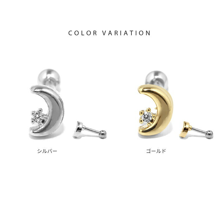d-032 ボディピアス 軟骨ピアス 16G 月 ムーン サージカルステンレス 金属アレルギー対応 金属アレルギー つけっぱなし ステンレス シルバー ゴールド レディース メンズ ヘリックス ヘリックスピアス キュービックジルコニア 片耳用