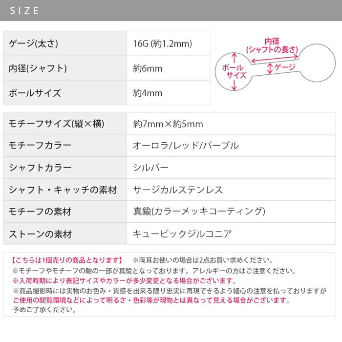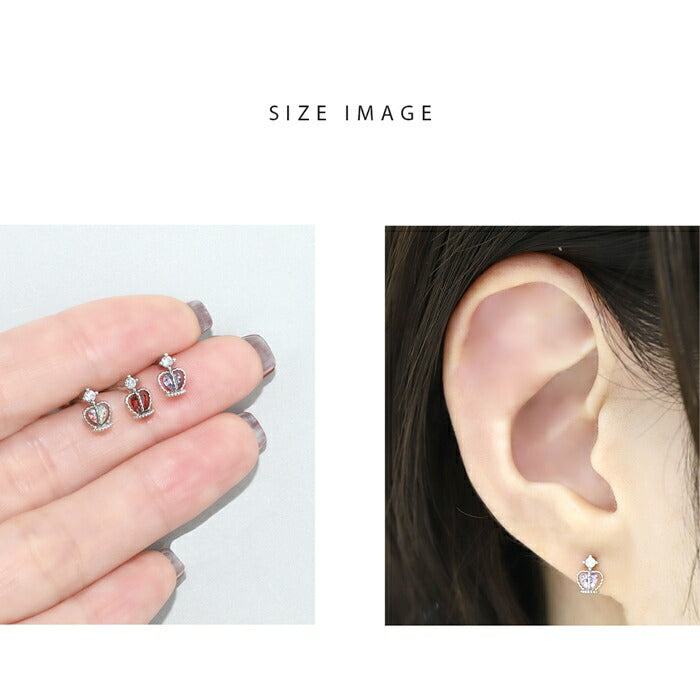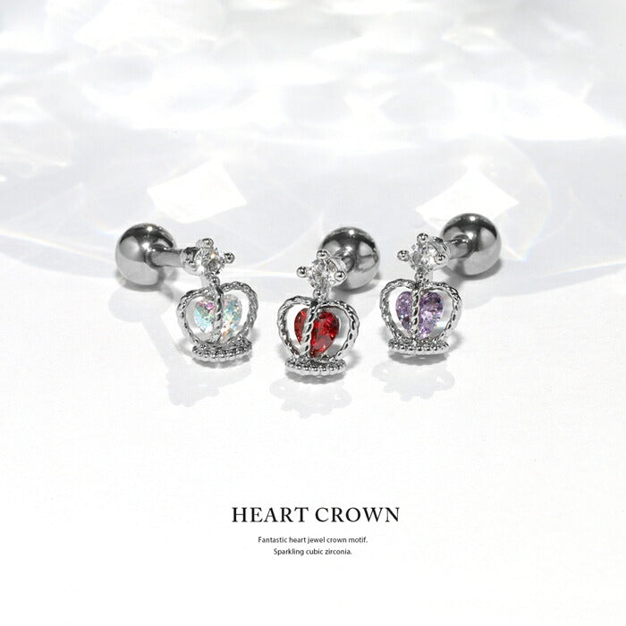 16G ボディピアス 王冠 クラウン ハートジュエル ストレートバーベル オーロラ レッド パープル 軟骨1414 d-033