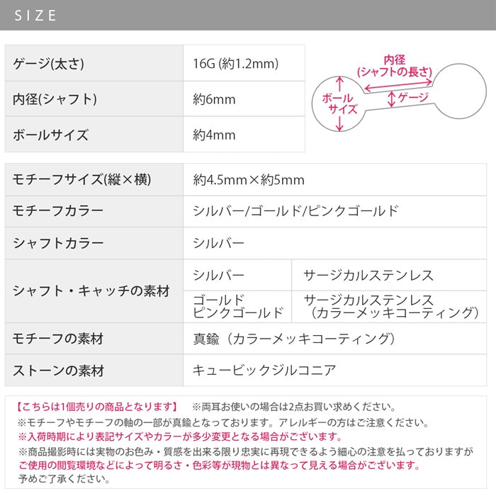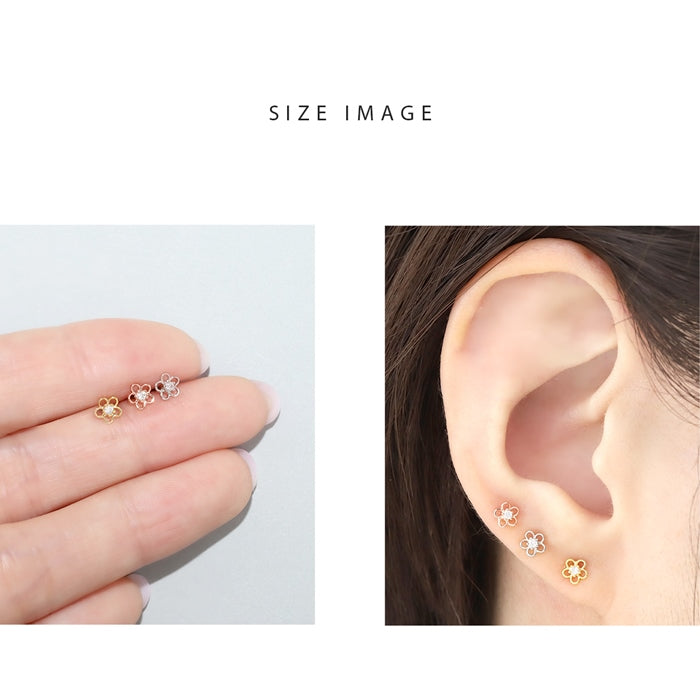 d-034 ボディピアス 軟骨ピアス 16G ピアス 金属アレルギー サージカルステンレス 花 フラワー つけっぱなし ストレートバーベルレディース フラワー シルバー ゴールド ピンクゴールド シンプル アクリル キラキラ ヘリックス キュービックジルコニア 片耳用