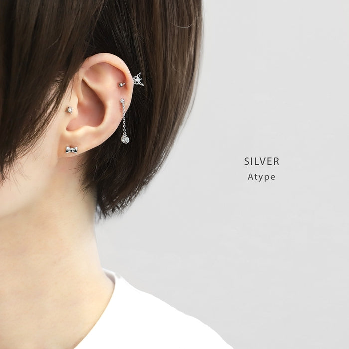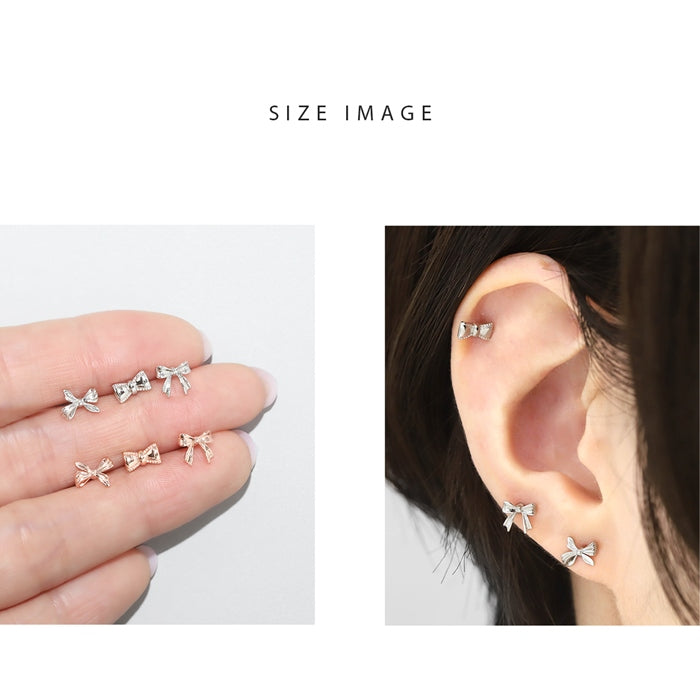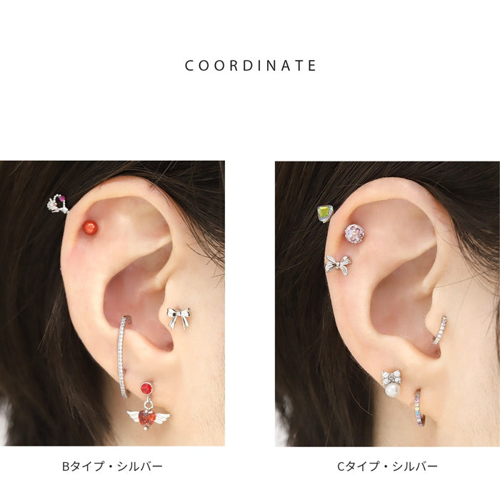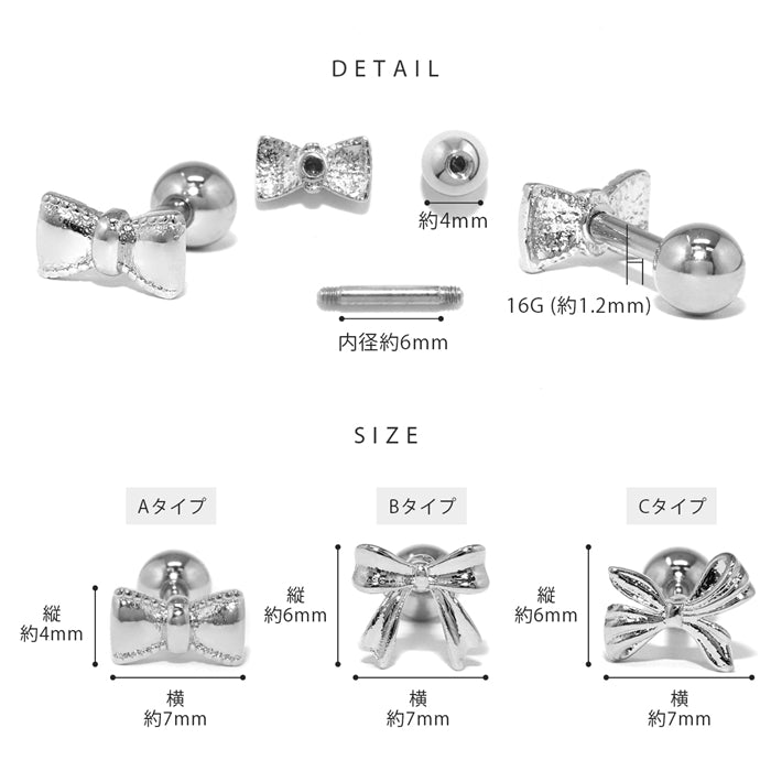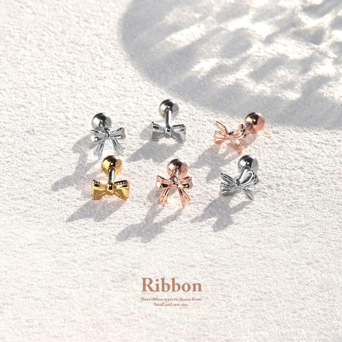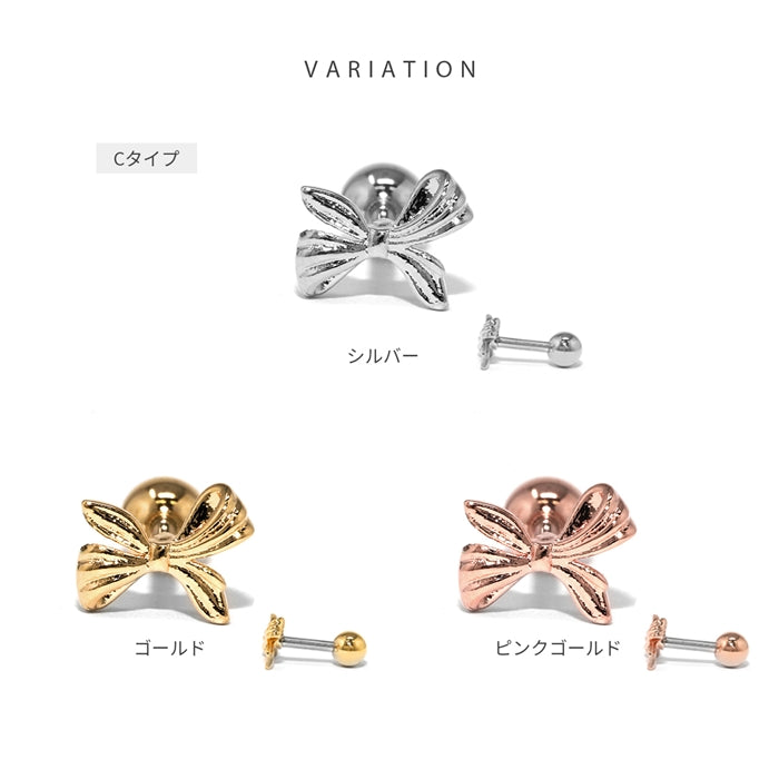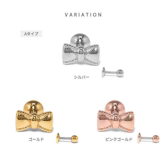 ★d-035 ボディピアス 軟骨ピアス 16G リボン 金属アレルギー 金属アレルギー対応 ストレートバーベル サージカルステンレス つけっぱなし シルバー ピンクゴールド アンテナヘリックス トラガス ヘリックス かわいい 耳たぶ 片耳用