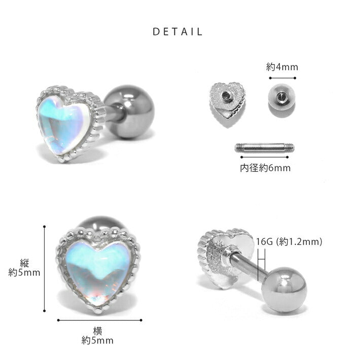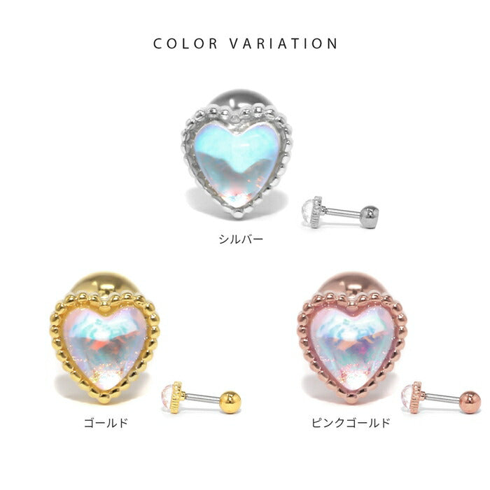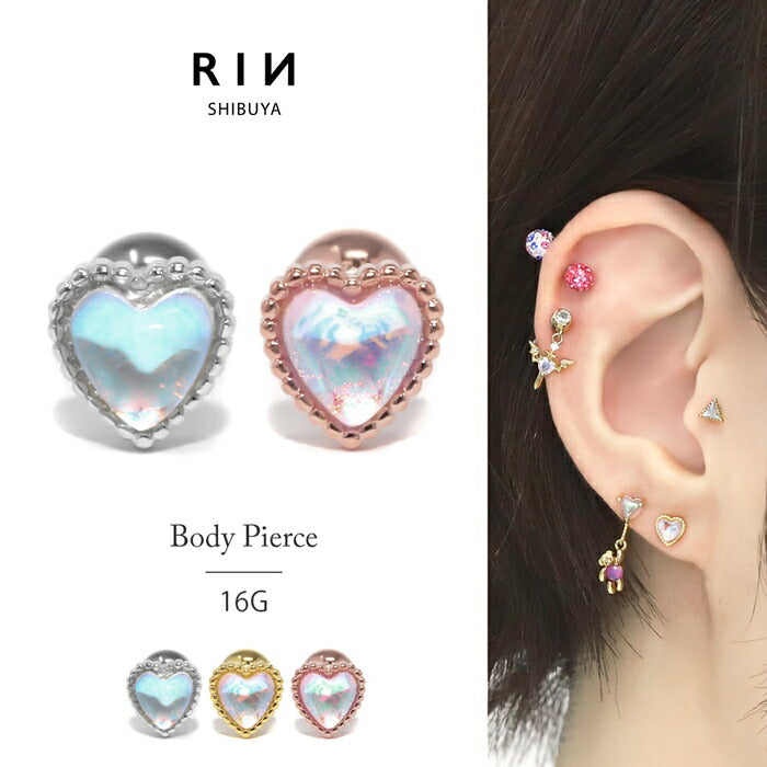 16G オーロラハートジュエル ボディピアス 軟骨1417 d-036