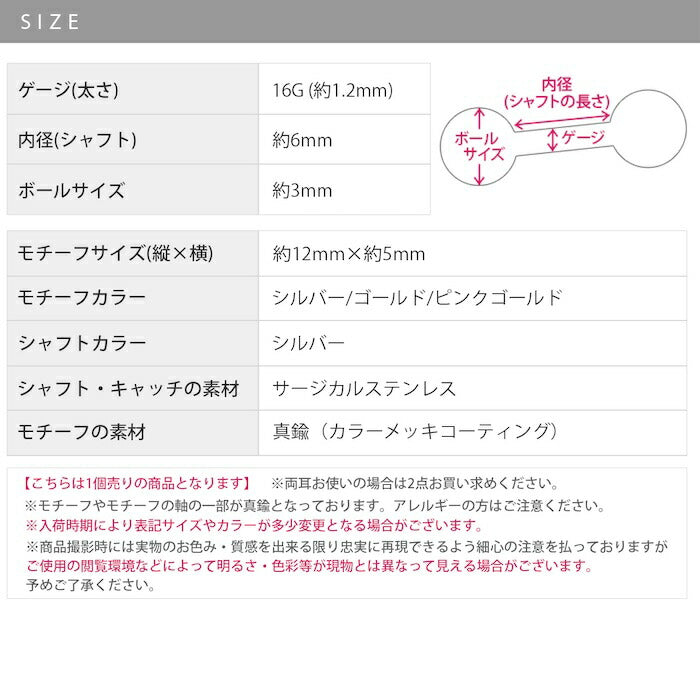 ※こちらの商品の一部カラーは、カラーのメッキコーティングを施しています。体質によって着けたままにされますと、メッキコーティングが剥がれる可能性がございます。