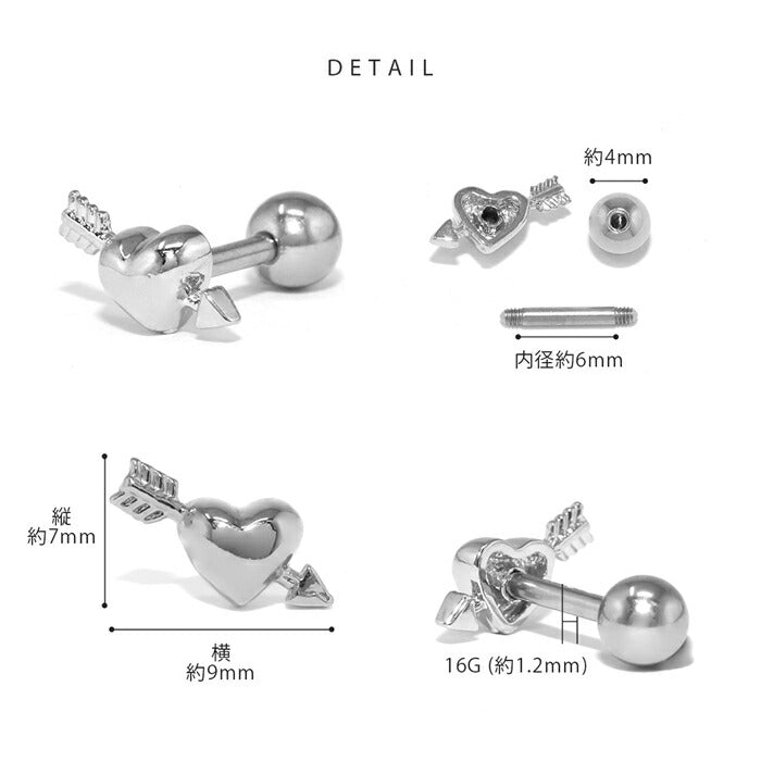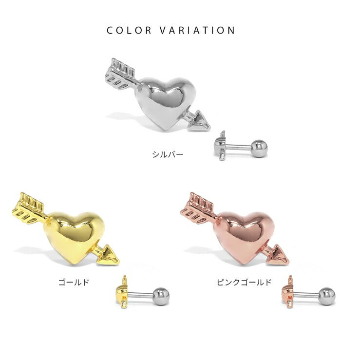 d-040 ボディピアス 16G 軟骨ピアス つけっぱなし ヘリックス ヘリックスピアス サージカルステンレス ステンレス 金属アレルギー 金属アレルギー対応 ハート 矢 アロー ピアス レディース メンズ ストレートバーベル 小さめ片耳用