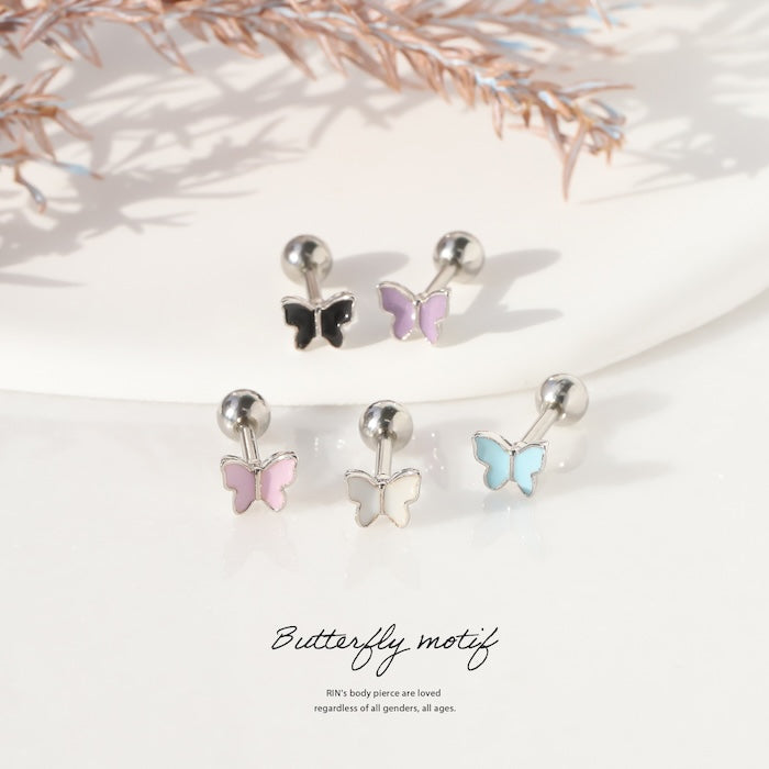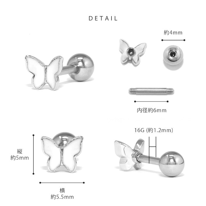 d-041 ボディピアス 軟骨ピアス 16G 蝶々 ピアス 金属アレルギー サージカルステンレス つけっぱなし セカンドピアス ステンレスピアス ヘリックス トラガス おしゃれ かわいい ストレートバーベル 耳たぶ 軟骨 ボディーピアス レディース 片耳用