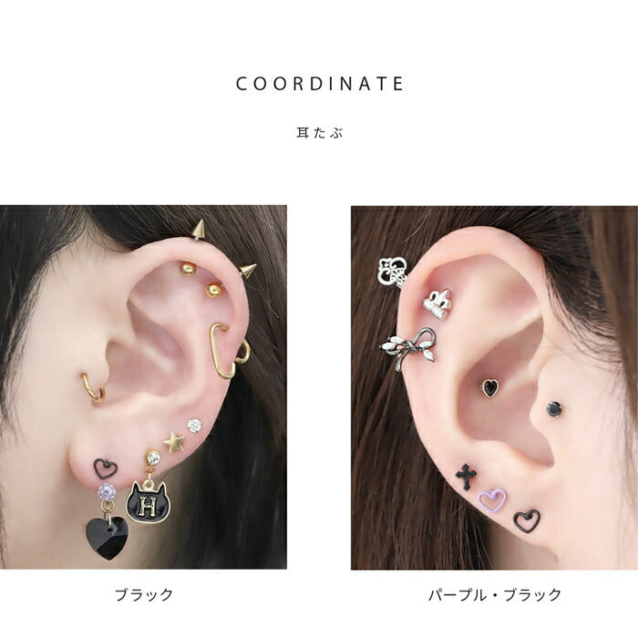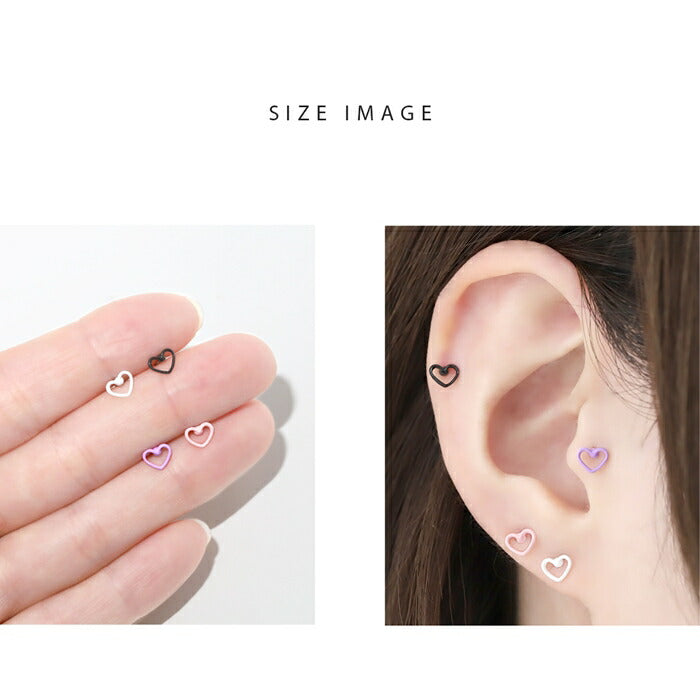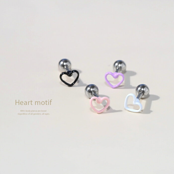 d-045 軟骨ピアス 16g ボディピアス 金属アレルギー ハート はーと つけっぱなし ステンレス ストレートバーべル セカンドピアス レディース サージカルステンレス ヘリックスピアス ピアス シンプル ホワイト ライトピンク パープル ブラック かわいい 片耳用