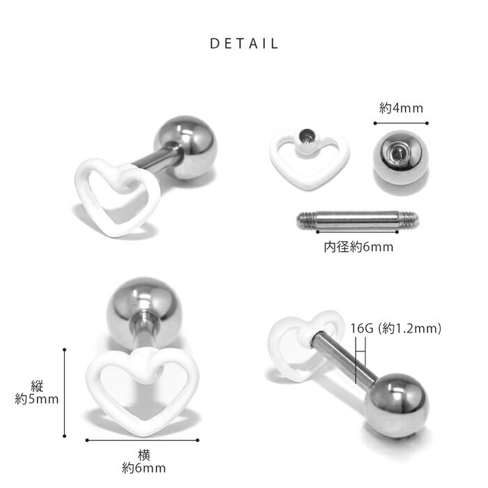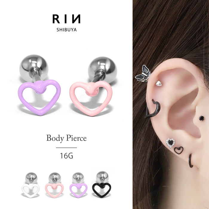 16g ハートフレーム ボディピアス ホワイト ベビーピンク ラベンダー ブラック ストレートバーベル 軟骨1443 d-045