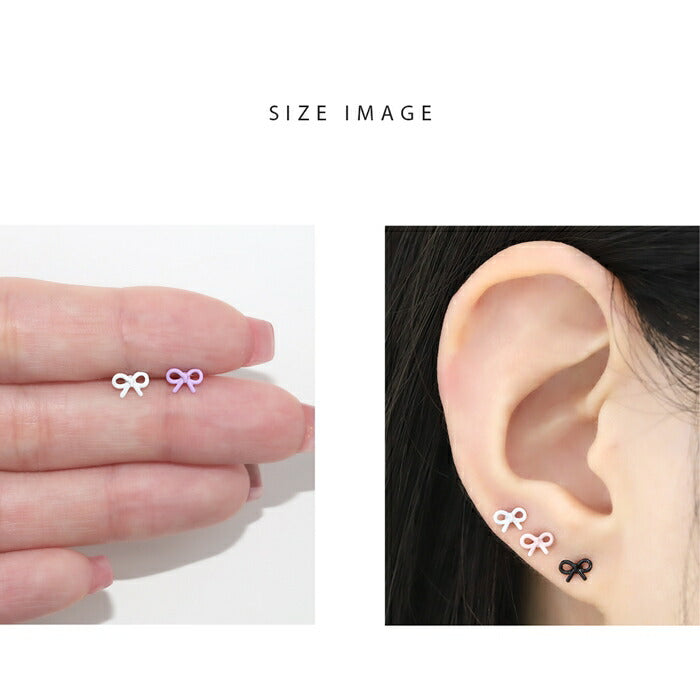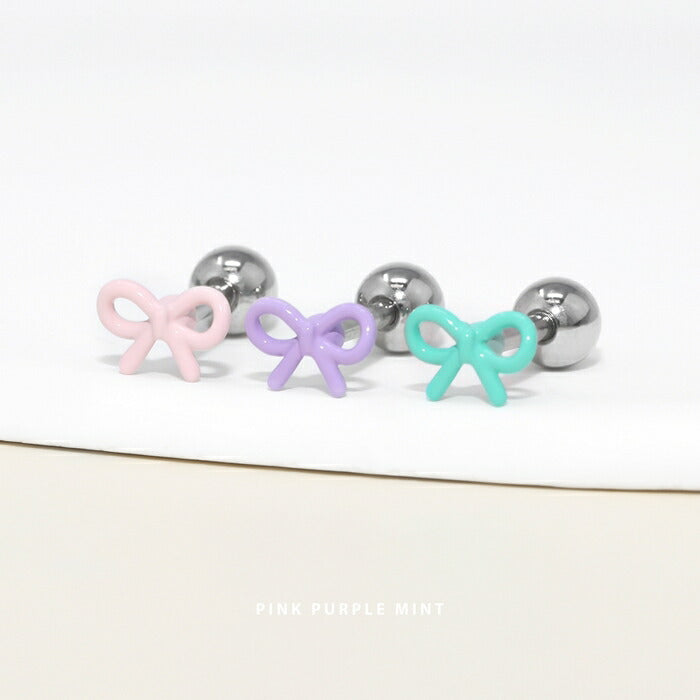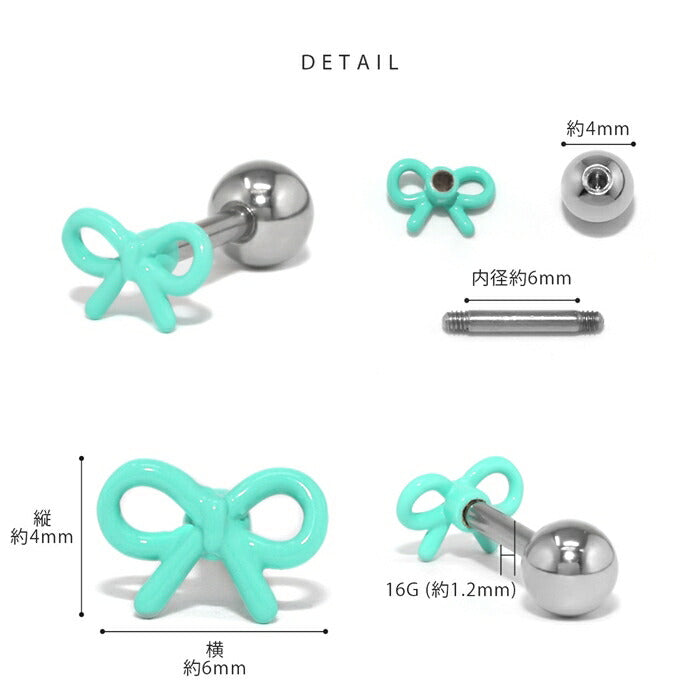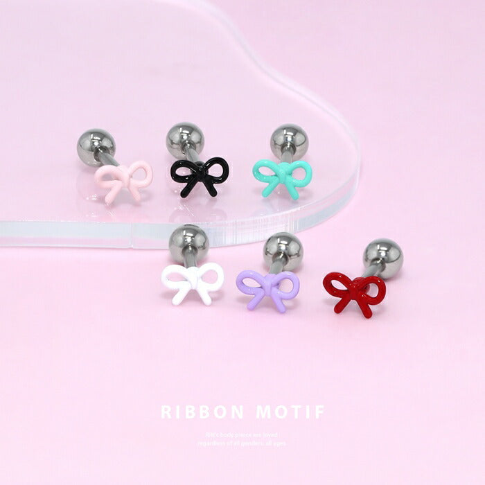 d-052 ボディピアス 軟骨ピアス 16G 金属アレルギー対応 金属アレルギー サージカルステンレス つけっぱなし リボン ストレートバーベル レディース 女性 仕事 オフィス かわいい シンプル 小さめ ホワイト ピンク レッド ミント パープル ブラック 普段使い