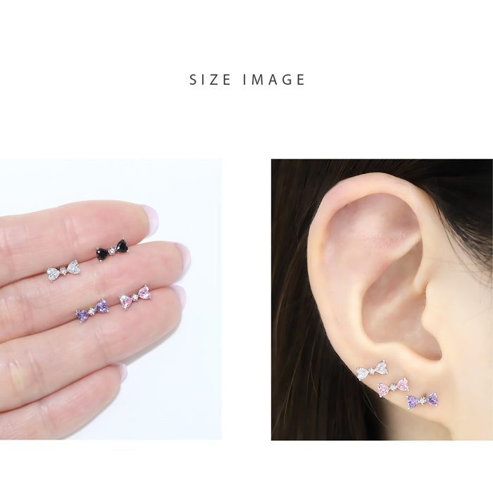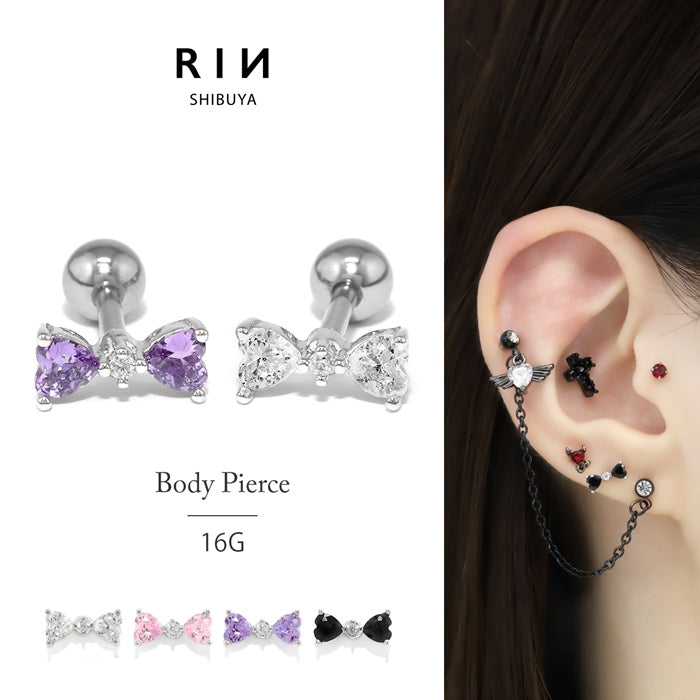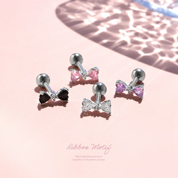 d-055 ボディピアス 軟骨ピアス 16G リボン 金属アレルギー 金属アレルギー対応 ストレートバーベル サージカルステンレス つけっぱなし シルバー クリア ピンク パープル ブラック アンテナヘリックス トラガス ヘリックス かわいい 耳たぶ 片耳用