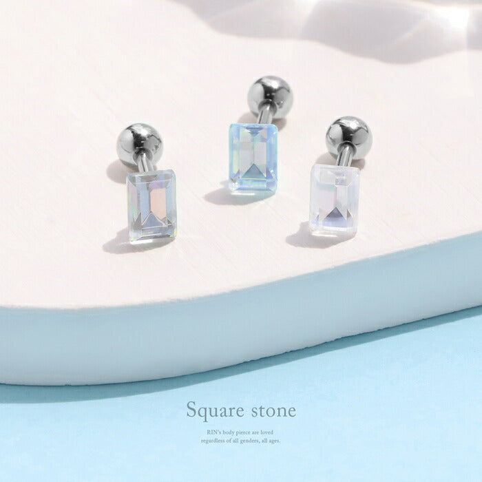 d-057 ボディピアス 軟骨ピアス 16G 金属アレルギー対応 金属アレルギー サージカルステンレス つけっぱなし スクエア 長方形 ストレートバーベル レディース 女性 大人 仕事 オフィス きれい かわいい おしゃれ シンプル 小さめ ホワイト ブルー グレー 普段使い