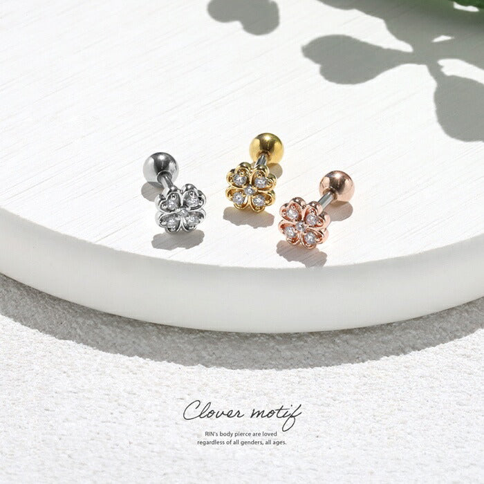 d-059 軟骨ピアス 16G ボディピアス サージカルステンレス 金属アレルギー対応 金属アレルギー 四葉のクローバー ジュエル キュービックジルコニア ストレートバーベル セカンドピアス レディース シルバー ゴールド ピンクゴールド かわいい 片耳用