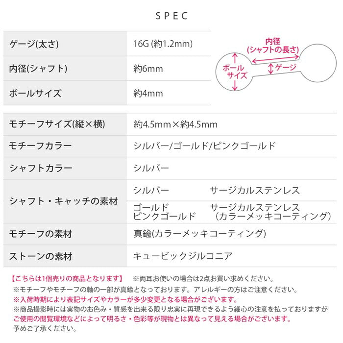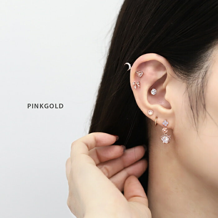 d-061 軟骨ピアス 16G ボディピアス サージカルステンレス 金属アレルギー対応 金属アレルギー 花 フラワー つけっぱなし キュービックジルコニア ストレートバーベル セカンドピアス レディース シルバー ゴールド ピンクゴールド かわいい 片耳用