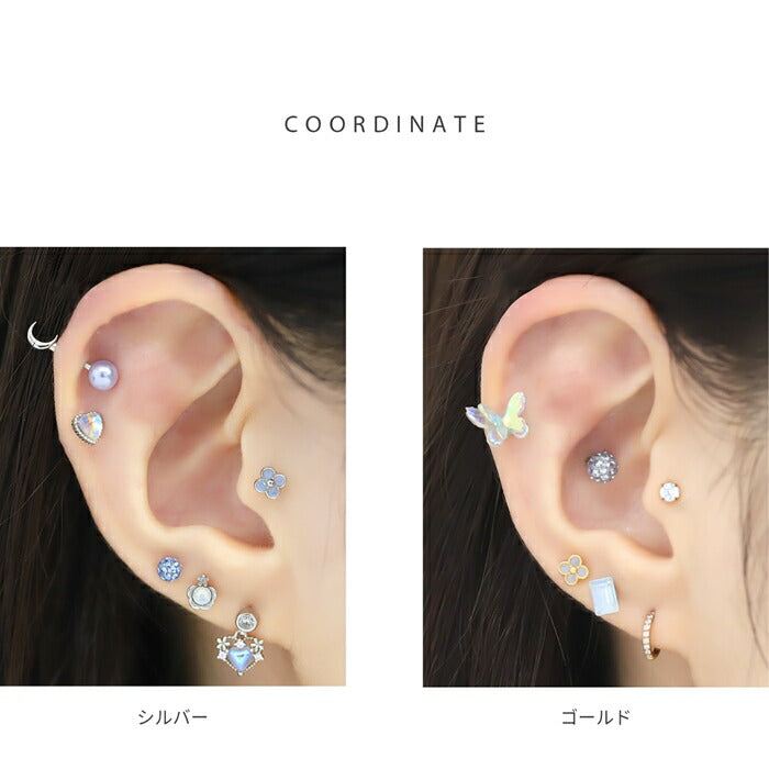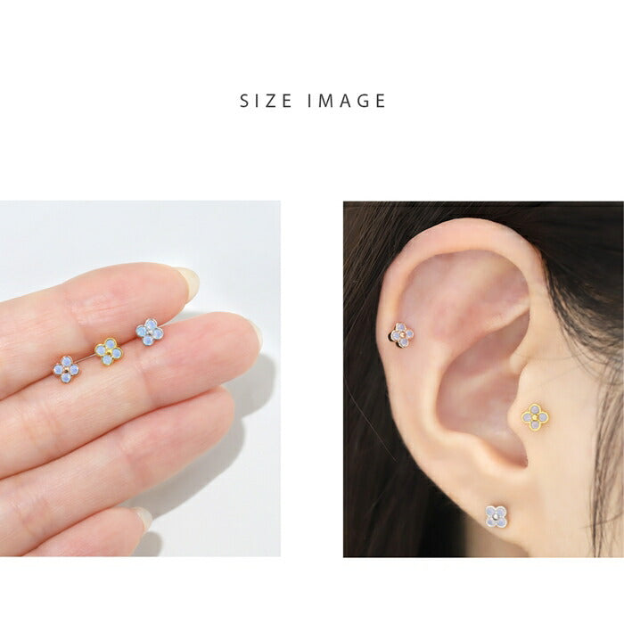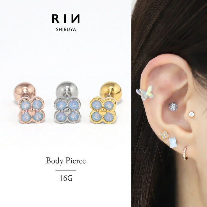 16G ボディピアス ミルキーブルージュエル フラワー クローバー ストレートバーベル 片耳用 軟骨1481 d-061
