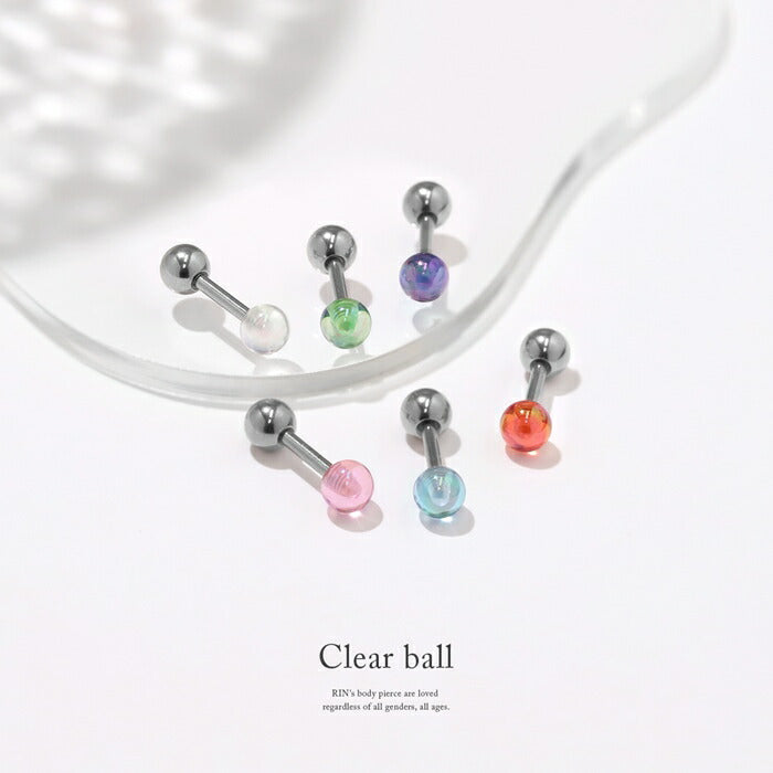 16G ボール クリアカラー シンプル ストレートバーベル 【片耳用】 軟骨1495 d-067