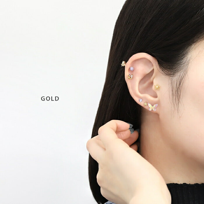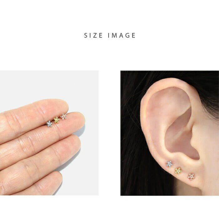 d-068 ボディピアス 軟骨ピアス 16G フラワー 小さめ サージカルステンレス 金属アレルギー対応 花 つけっぱなし 軟骨 女子 キュート ストレートバーベル シルバー ゴールド ピンクゴールド デート お出かけ デイリー 日常使い ギフト 片耳用