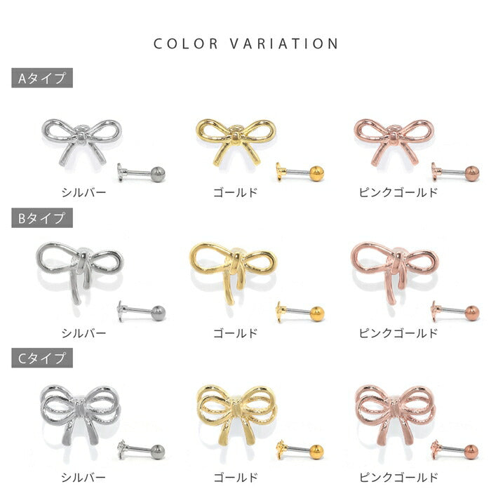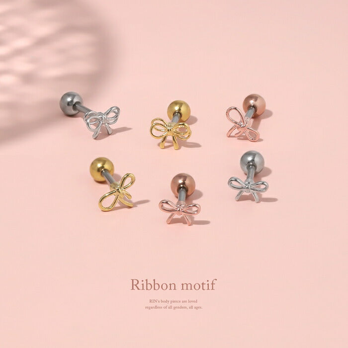 d-070 ボディピアス 軟骨ピアス 16G リボン バレエコア 金属アレルギー対応 レディース ストレートバーベル サージカルステンレス つけっぱなし ヘリックス かわいい 小さい フェミニン 女子会 人気 トレンド カジュアル デイリー 日常使い 通勤 オフィス 片耳用
