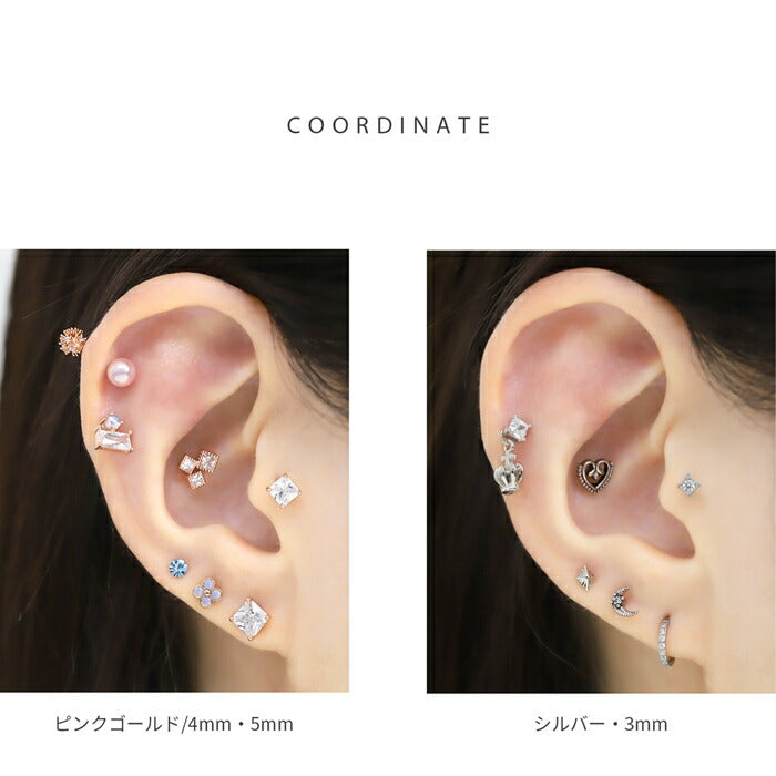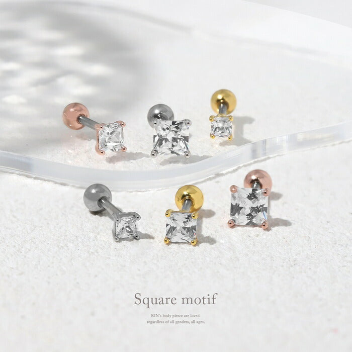 d-071 ボディピアス 16G 軟骨ピアス プリンセスカット サージカルステンレス 金属アレルギー対応 キュービックジルコニア つけっぱなし ストレートバーベル スクエア 立爪 上品 3mm 4mm 5mm プチプライス高見え 日常使い オフィスカジュアル 通勤 片耳用