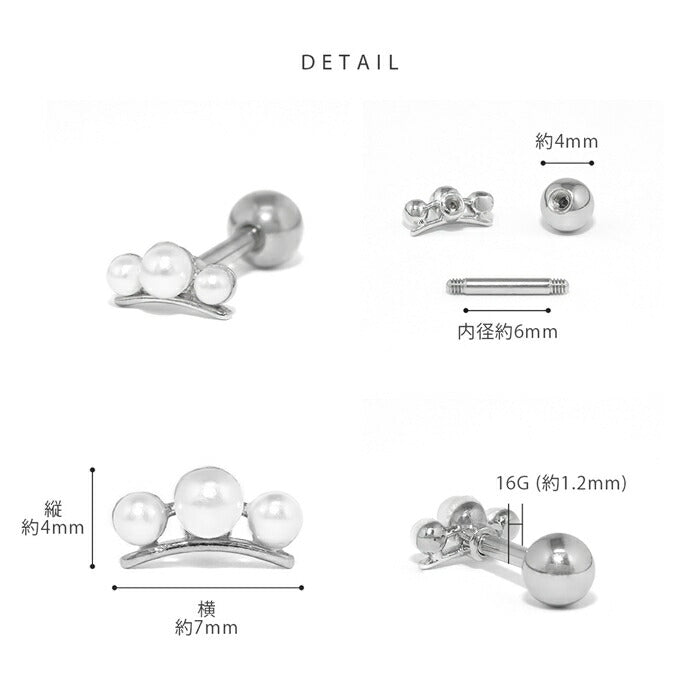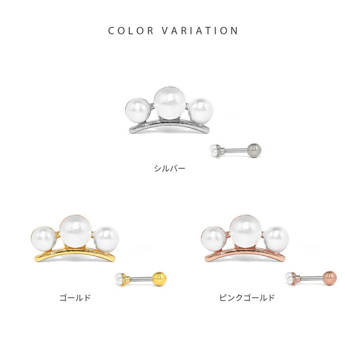 d-072 軟骨ピアス 金属アレルギー対応 16G ボディピアス パール 3連 アレルギー対応 つけっぱなし サージカルステンレス ピアス レディース ヘリックス かわいい 上品 オケージョン 卒業式 入学式 卒入園式 プチプライス高見え デイリー ストレートバーベル 片耳用