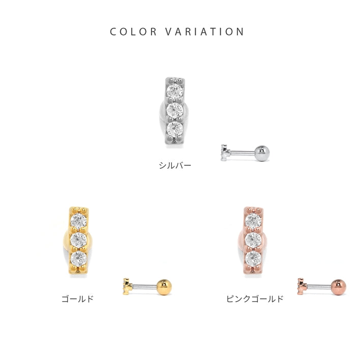 16G ジュエル 3連 上品 フェミニン ストレートバーベル キュービックジルコニア 【片耳用】 軟骨1517 d-073
