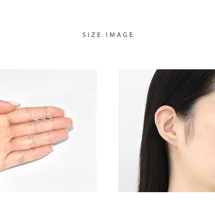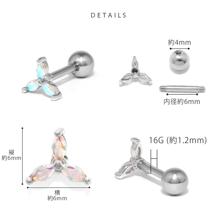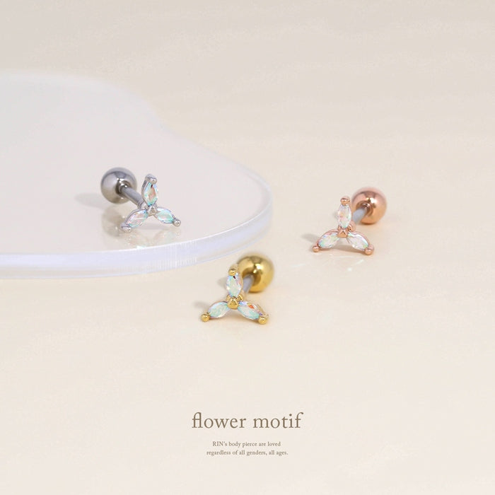 d-083 軟骨ピアス 16G ボディピアス フラワー 三つ葉 キュービックジルコニア キラキラ かわいい ストレートバーベル ピアス サージカルステンレス 片耳用