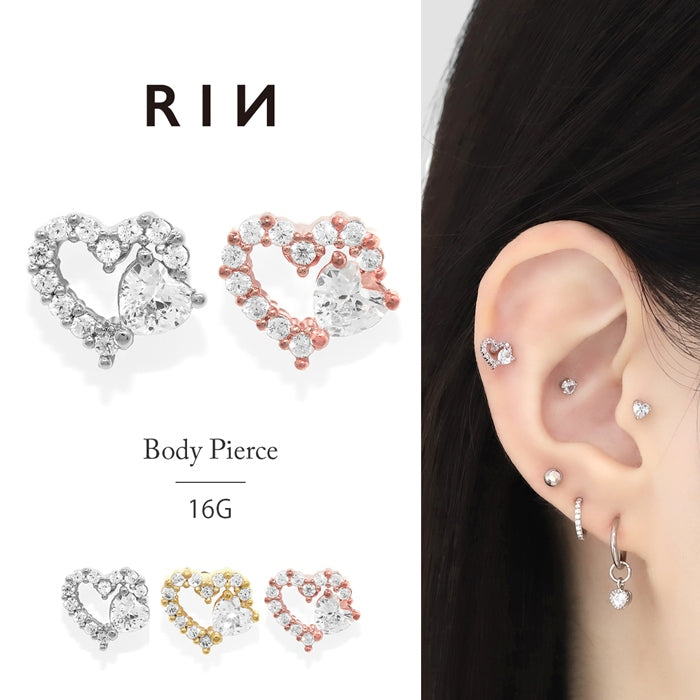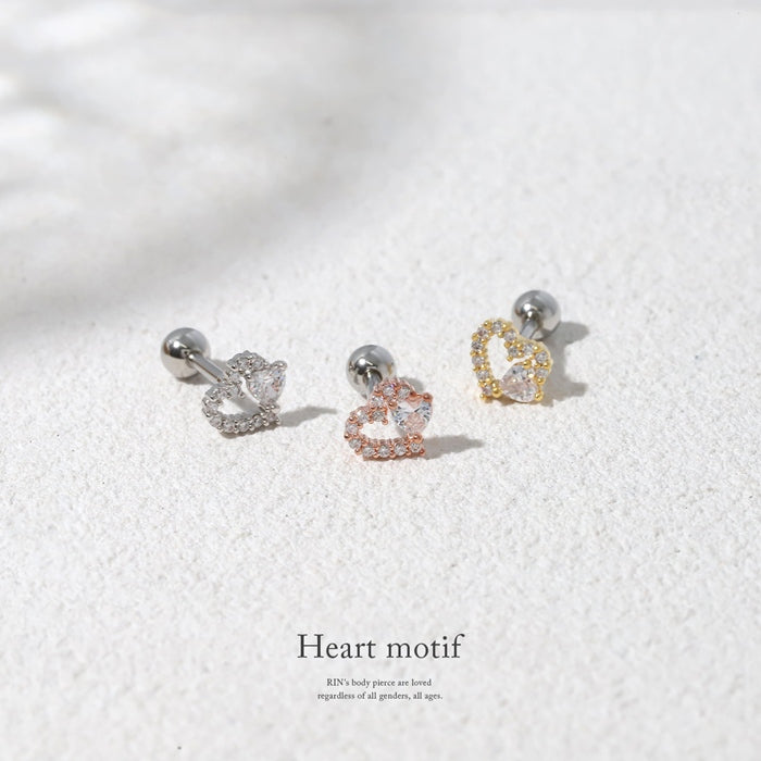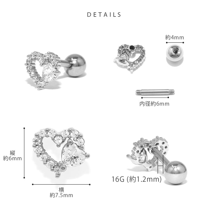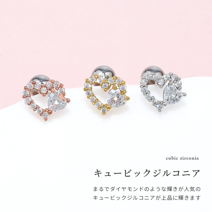 ★ f1f-008 軟骨ピアス 16G ボディピアス ハート ジュエル フレーム キラキラCZ 金属アレルギー ストレートバーベル ピアス サージカルステンレス 片耳用