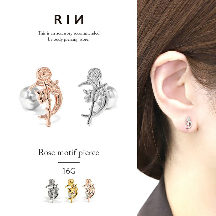 【全品送料無料】 軟骨ピアス 16G キャッチ かわいい サージカルステンレス 可愛い ピアス 小さい 大人 おしゃれ カスタマイズ 薔薇 花 バラ シルバー ゴールド ピンクゴールド ボディピアス ボディーピアス 片耳用 凛 RIN