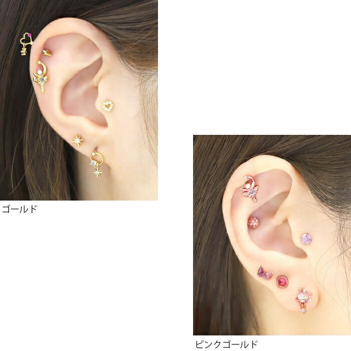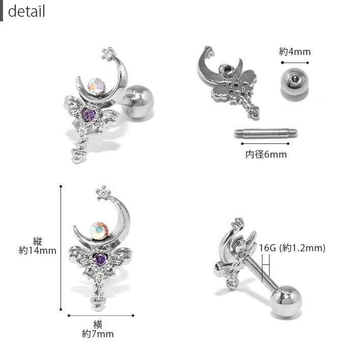 16G 月 ムーン 三日月 スティック マジカル ハート 天使の羽 ストレートバーベル 軟骨1347 f1f-60