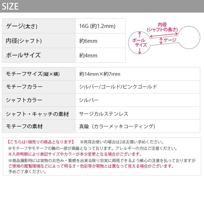 ※こちらの商品の一部カラーは、カラーのメッキコーティングを施しています。体質によって着けたままにされますと、メッキコーティングが剥がれる可能性がございます。