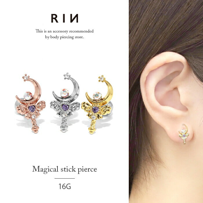 ★f1f-60 ボディピアス 軟骨ピアス 16G 月 ステッキ ピアス 金属アレルギー サージカルステンレス ストレートバーベル シンプル ジュエル キラキラ キャッチ レディース ステンレスピアス セカンドピアス つけっぱなしピアス シルバー ゴールド ピンクゴールド 三日月 軟骨用 片耳用