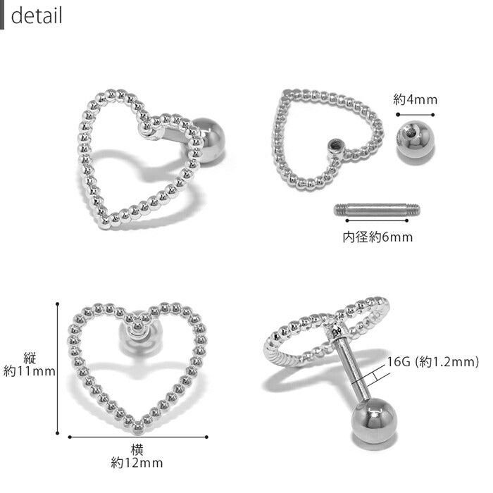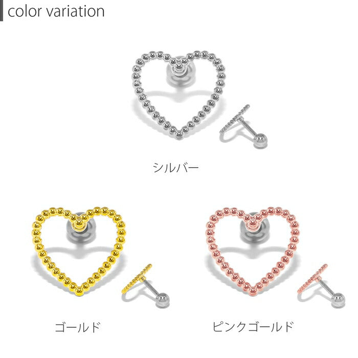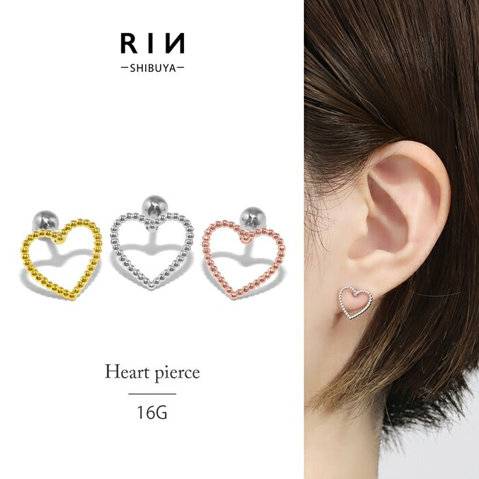 f1f-63 軟骨ピアス 16G ボディピアス ハート サージカルステンレス 金属アレルギー対応 ヘリックス シルバー ゴールド ピンクゴールド セカンドピアス ピアス ストレートバーベル 軟骨用 ボディーピアス トラガス 可愛い かわいい Pierce 片耳用