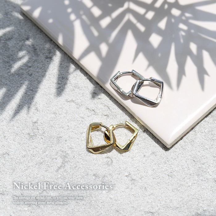 【両耳用・2個売り】ピアス キャッチレス フープピアス スクエア 変形フレーム アクセサリーカテ0012 fp-003