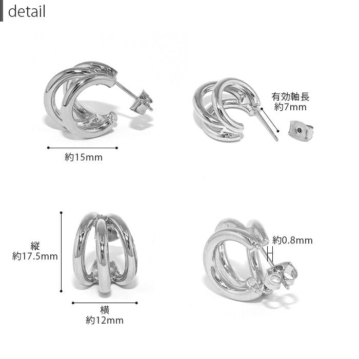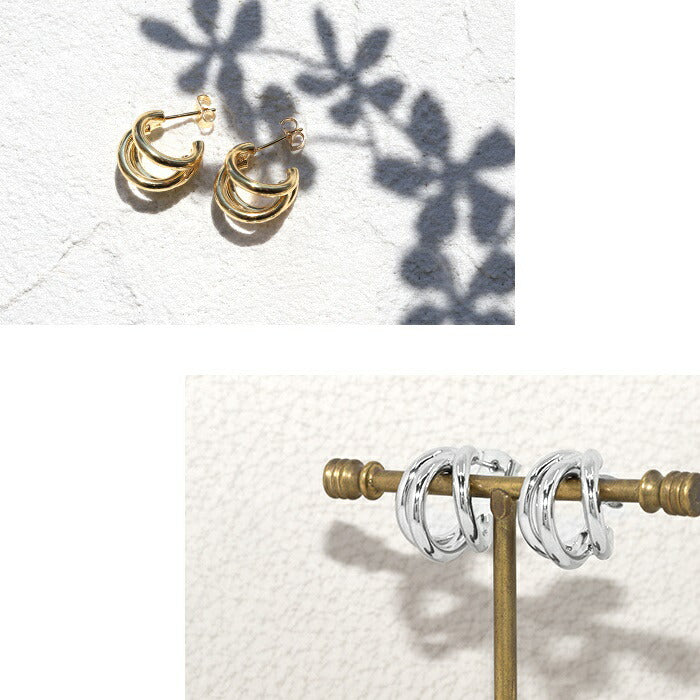【両耳用・2個売り】フープピアス 18kコーティング 3連 ニッケルフリー アクセサリーカテ0017 fp-007
