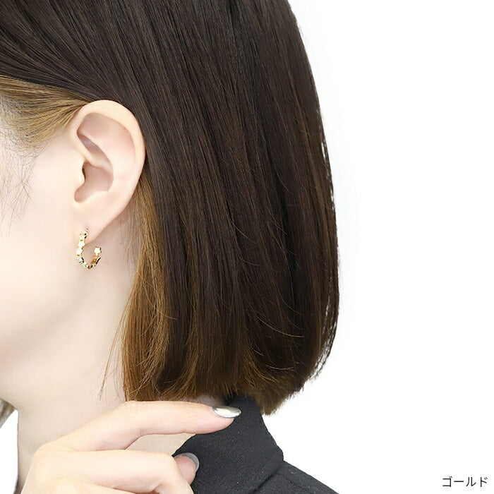 【両耳用・2個売り】フープピアス スター 星 ジュエルストーン 上品 きれいめ ニッケルフリー 真鍮 18kコーティング スタッド フープデザイン アクセサリーカテ0026 fp-016