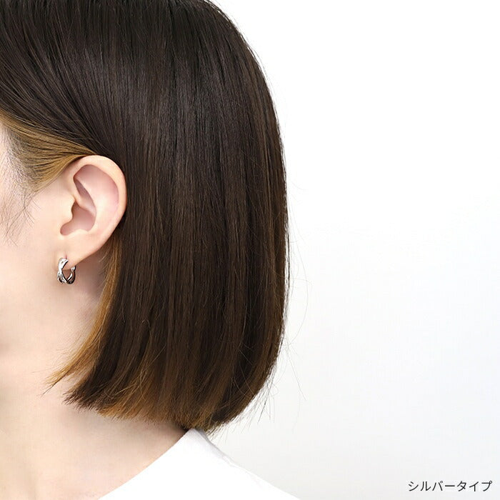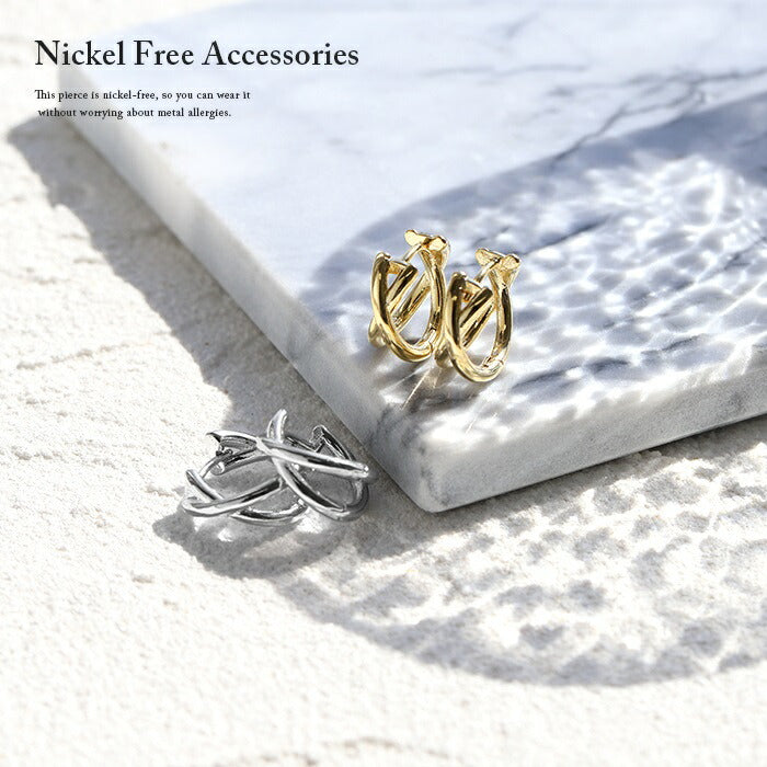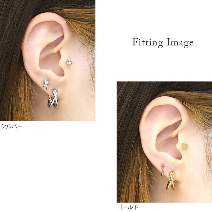 fp-018 ピアス キャッチレス フープピアス リングピアス 金属アレルギー ニッケルフリー 18kコーティング クロス 2連 レディース シンプル ワンタッチピアス シルバー ゴールド おしゃれ かわいい 上品 きれいめ 耳たぶ 【両耳用・2個売り】