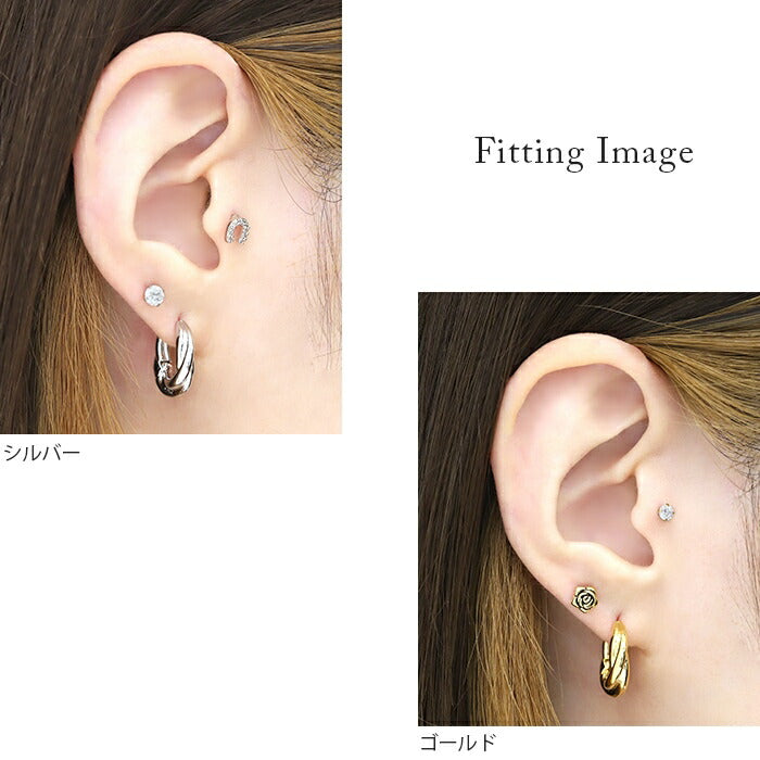 fp-020 ピアス キャッチレス フープピアス リングピアス 金属アレルギー ニッケルフリー 18kコーティング 2連 クロス レディース シンプル ワンタッチピアス シルバー ゴールド おしゃれ かわいい 上品 きれいめ 耳たぶ 【両耳用・2個売り】