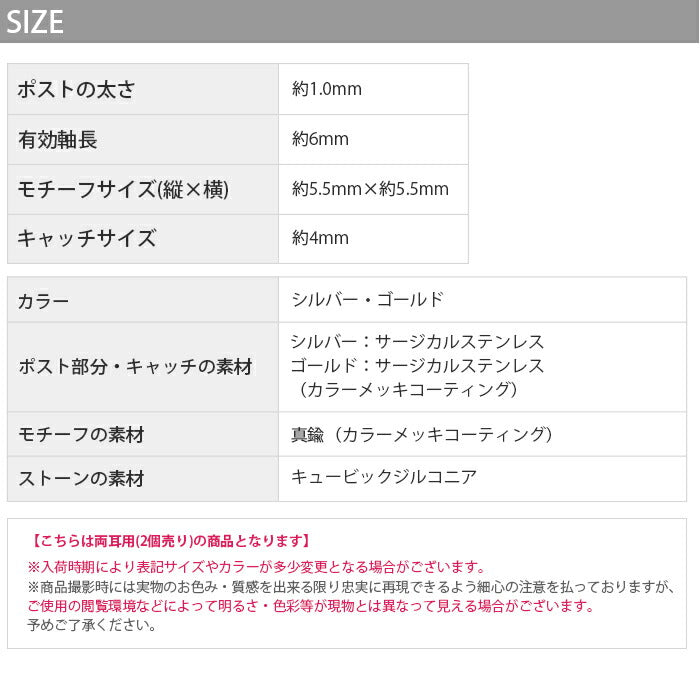 ※こちらの商品の一部カラーは、カラーのメッキコーティングを施しています。体質によって着けたままにされますと、メッキコーティングが剥がれる可能性がございます。