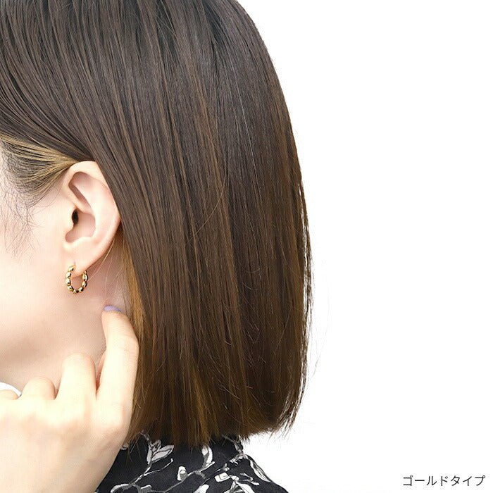 fp-025 ピアス 金属アレルギー キャッチレス フープピアス リングピアス ニッケルフリー 18kコーティング レディース シンプル ワンタッチピアス シルバー ゴールド おしゃれ かわいい 凸凹 大人 上品 きれいめ 耳たぶ 【両耳用・2個売り】