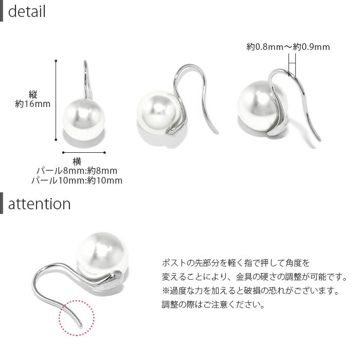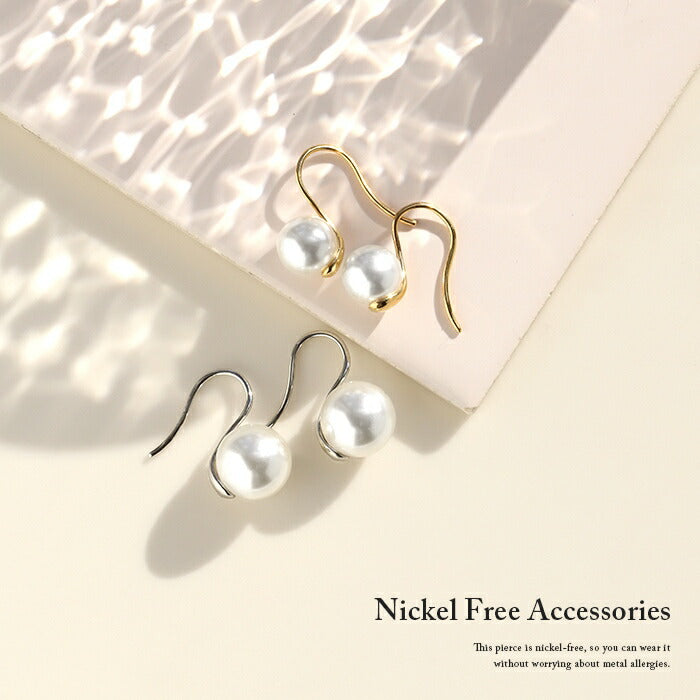 【両耳用・2個売り】パールピアス アレルギーフリー フック 大粒パール アクセサリーカテ0047 fp-031