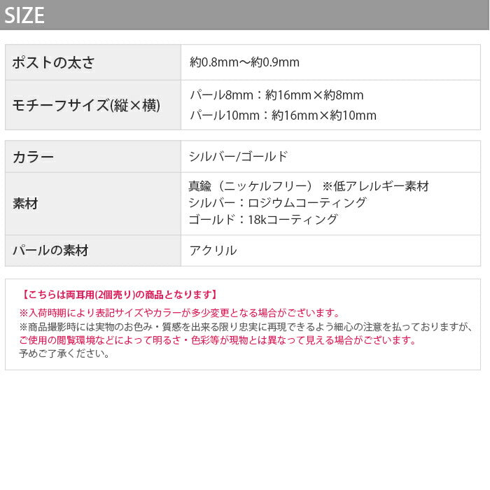 fp-031 ピアス パール 18金 金属アレルギー パールピアス ニッケルフリー ロジウムコーティング 18kコーティング 調整可能 レディース シルバー ゴールド おしゃれ かわいい シンプル 真珠 上品 きれいめ 耳たぶ 【両耳用・2個売り】