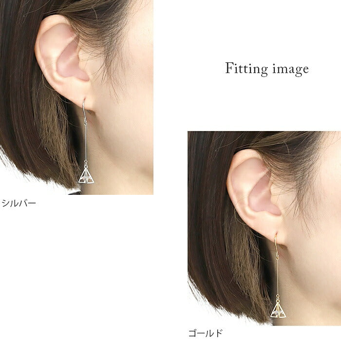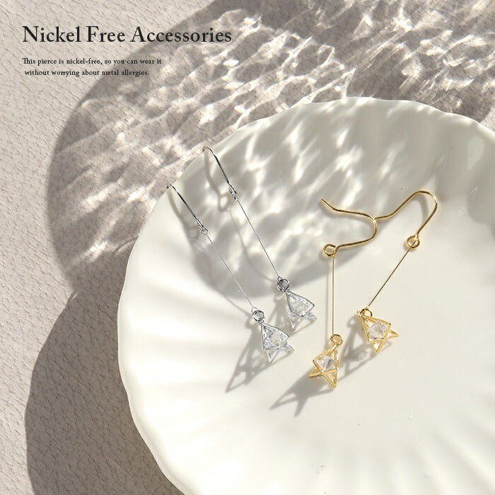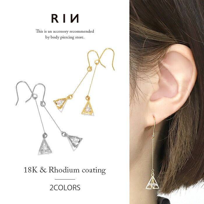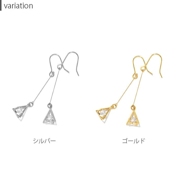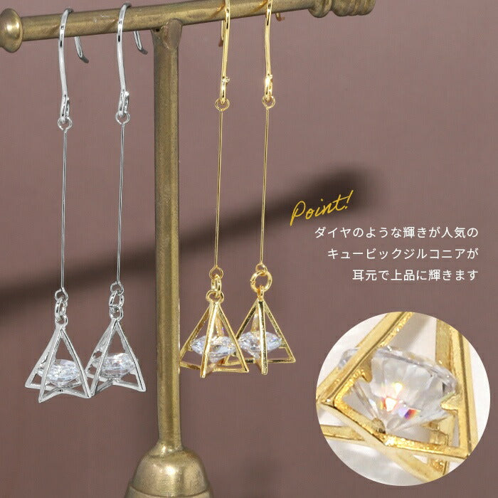 fp-032 ピアス 18金 金属アレルギー ニッケルフリー ロジウムコーティング 18kコーティング キュービックジルコニア ジュエル トライアングル レディース シルバー ゴールド おしゃれ かわいい シンプル 上品 きれいめ スタイリッシュ 揺れる 耳たぶ 【両耳用・2個売り】