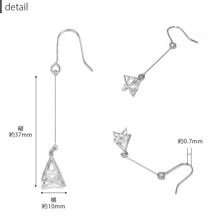【両耳用・2個売り】キュービックジルコニア ジュエル トライアングル 三角 スタイリッシュ フック アクセサリーカテ0048 fp-032