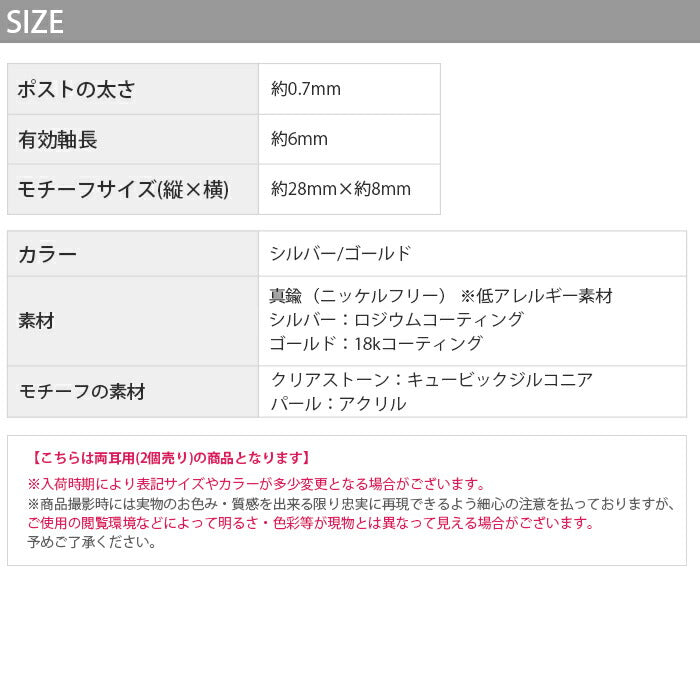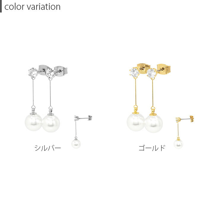 【両耳用・2個売り】パールチャーム キュービックジルコニア 18金コーティング ロジウムコーティング スタッドピアス アクセサリーカテ0050 fp-034