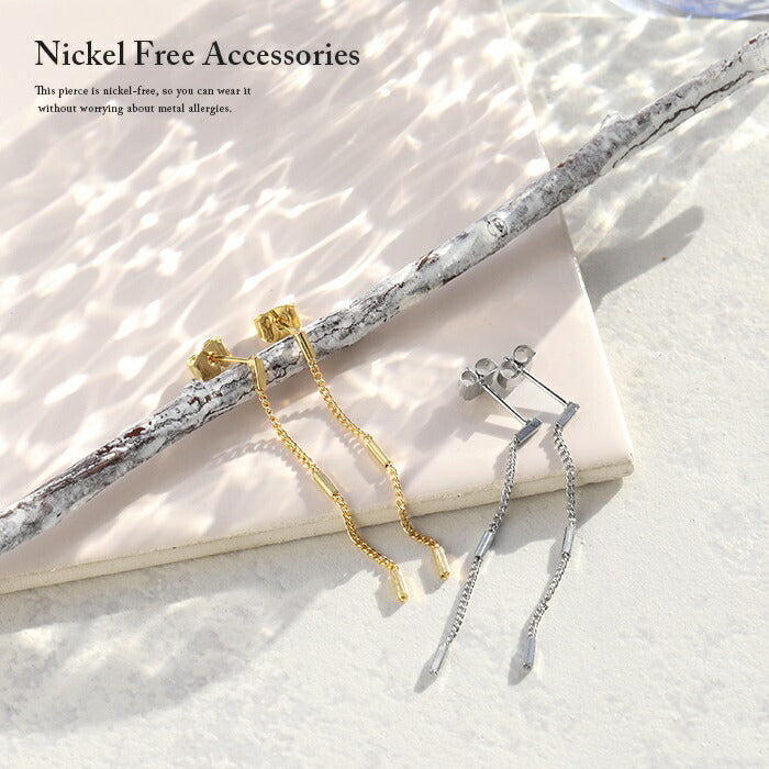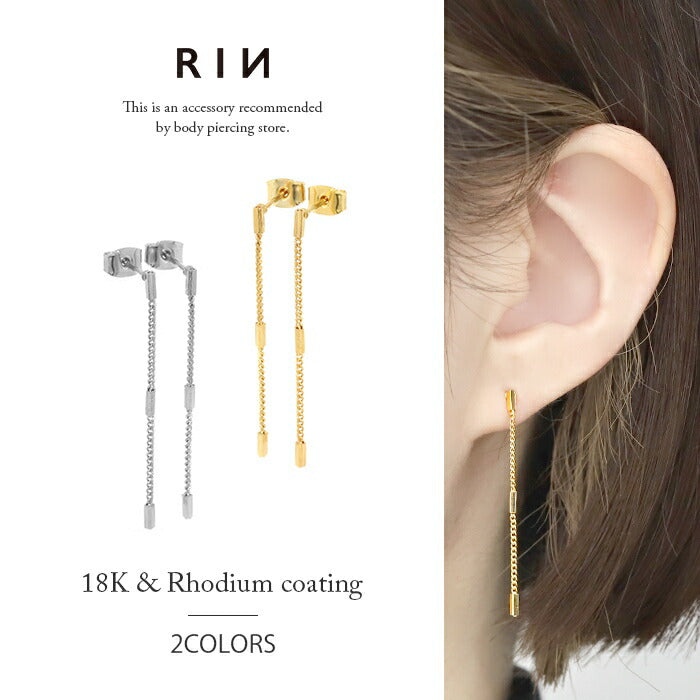 【両耳用・2個売り】チェーン 揺れる 18金コーティング ロジウムコーティング スタッドピアス アクセサリーカテ0051 fp-035