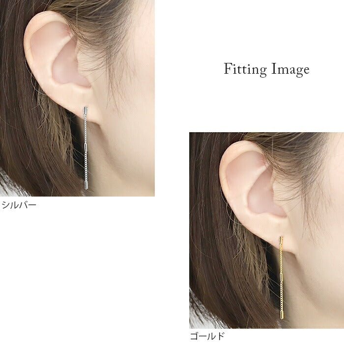 fp-035 ピアス チェーン 18金 金属アレルギー ニッケルフリー ロジウムコーティング 18kコーティング スタッドピアス レディース シルバー ゴールド おしゃれ かわいい シンプル 上品 きれいめ 揺れる 耳たぶ 【両耳用・2個売り】