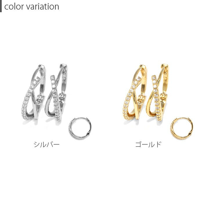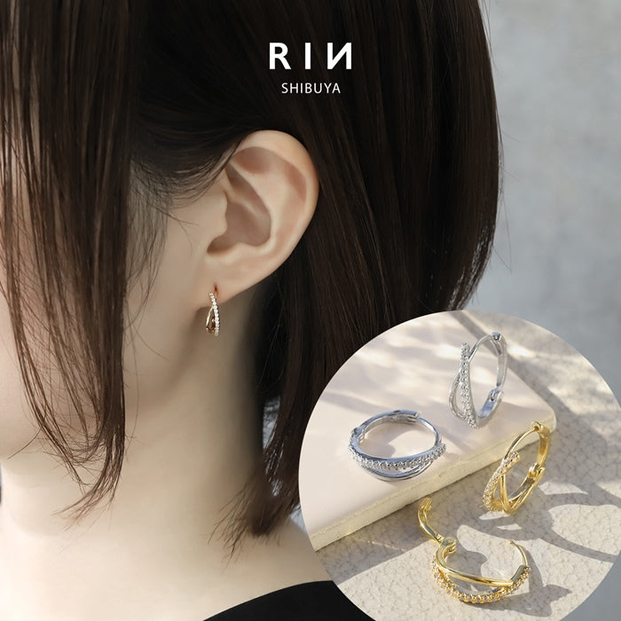 【両耳用・2個売り】シンプル 2連リングピアス ジュエル 18金コーティング ロジウムコーティング フープピアス アクセサリーカテ0054 fp-038