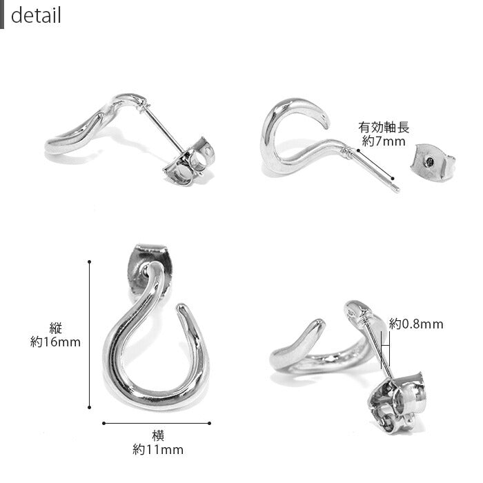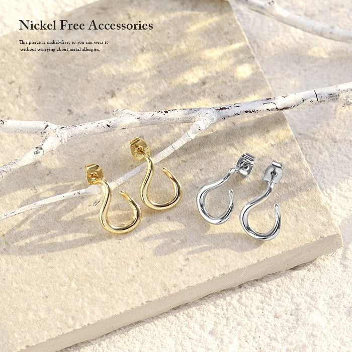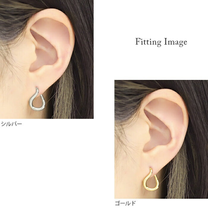 fp-042 ピアス 18k 18金 金属アレルギー つっけぱなし ニッケルフリー 18kコーティング レディース セカンドピアス シンプル シルバー ゴールド ポストピアス かわいい 変形 曲線 ロジウムコーティング 上品 耳たぶ 【両耳用・2個売り】