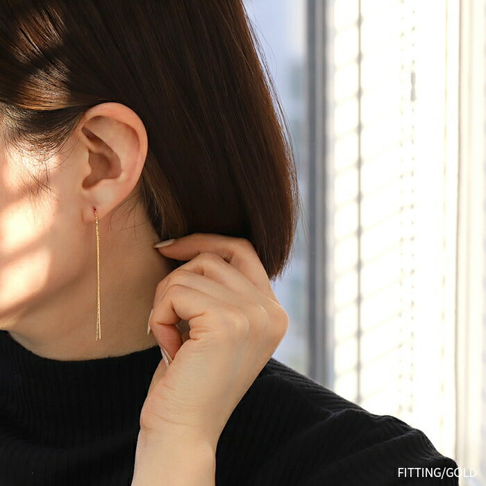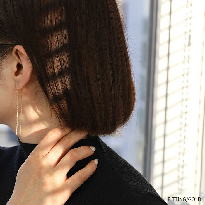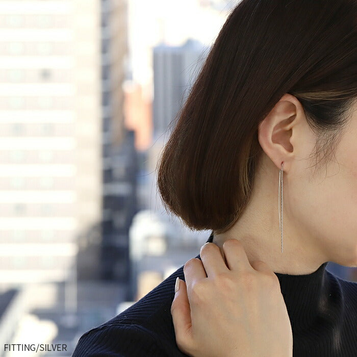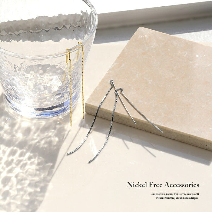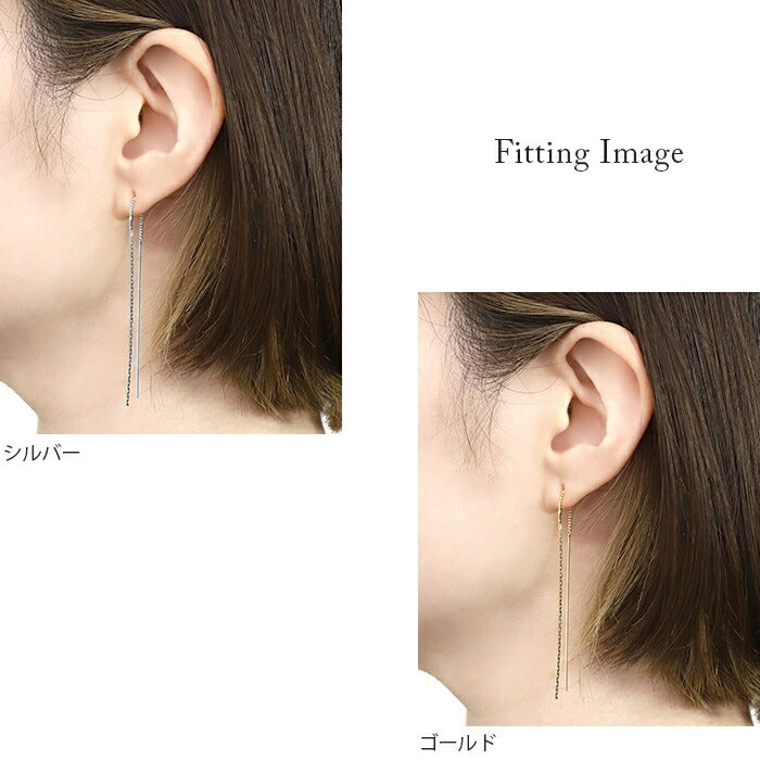fp-047 ピアス アメリカンピアス ロングピアス 18k 18金 金属アレルギー チェーンピアス レディース ニッケルフリー レディース セカンドピアス 18kコーティング ロジウムコーティング シンプル シルバー ゴールド 華奢 揺れる 上品 きれいめ 耳たぶ 【両耳用・2個売り】