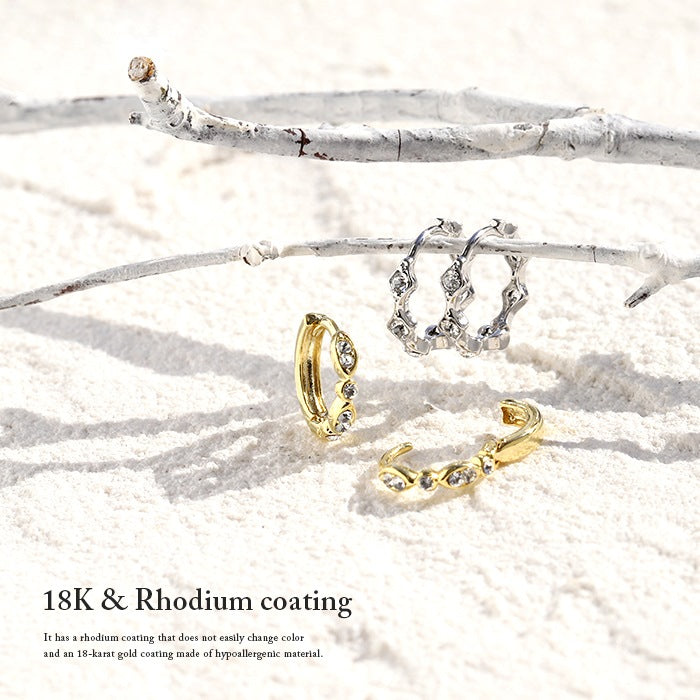 【両耳用・2個売り】 フープピアス ジュエル 18金 金属アレルギー ニッケルフリー リングピアス アクセサリーカテ0065 fp-049