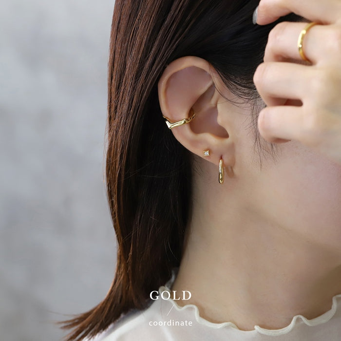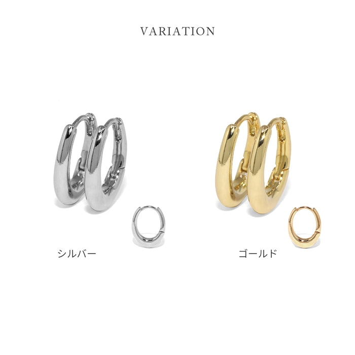 fp-051 ピアス 18k 18金 金属アレルギー フープ リング つっけぱなし キャッチレス 楕円 変形 ワンタッチ 18kコーティング レディース セカンドピアス シンプル シルバー ゴールド ロジウムコーティング 上品 きれいめ 耳たぶ 【両耳用・2個売り】