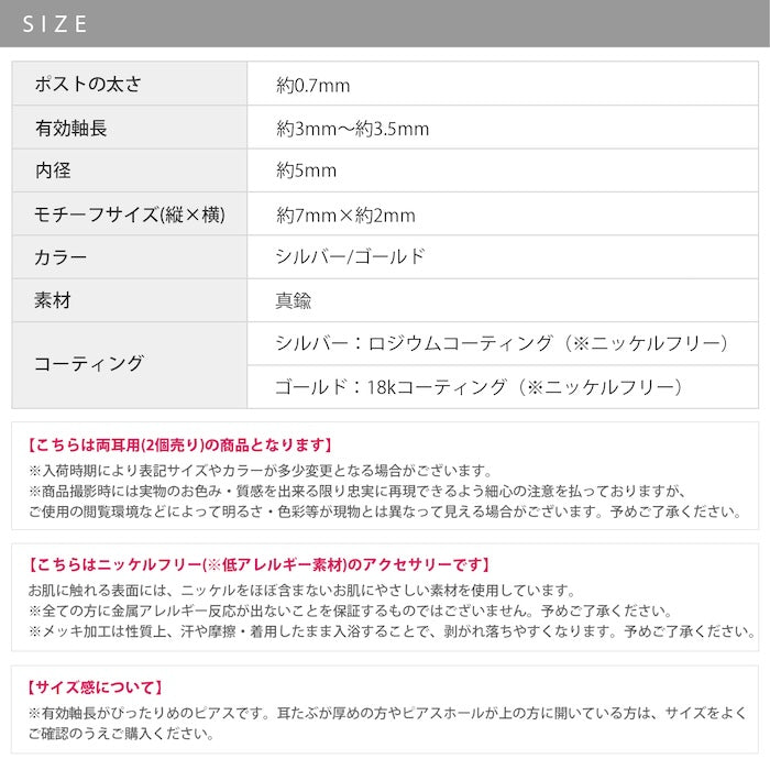 真鍮(ニッケルフリー)※低アレルギー素材 シルバー:ロジウムコーティング ゴールド:18kコーティング
