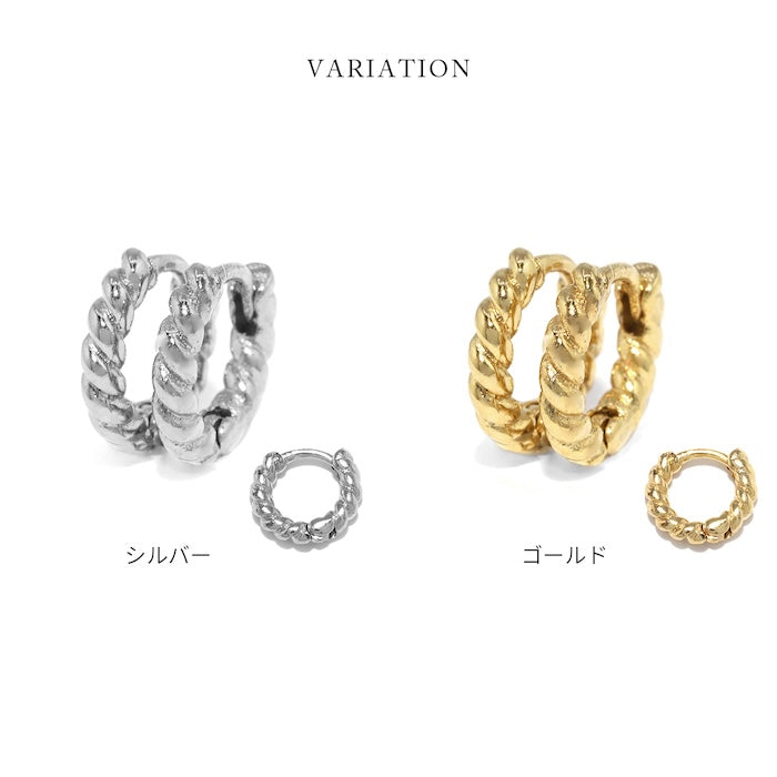 【両耳用・2個売り】フープピアス ワンタッチ 捩じり ツイスト リングピアス 18Kコーティング 金属アレルギー対応 アクセサリーカテ0074 fp-058